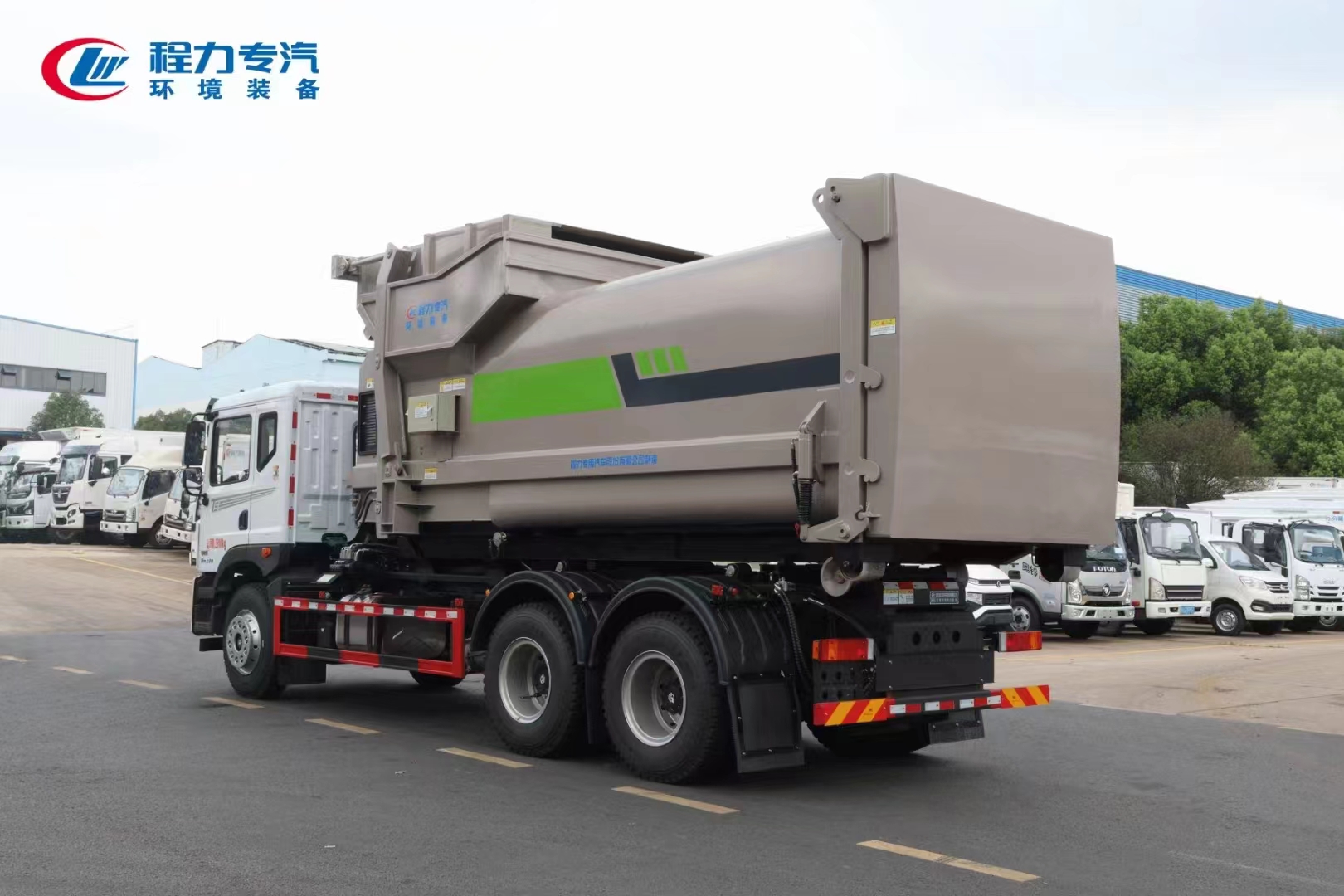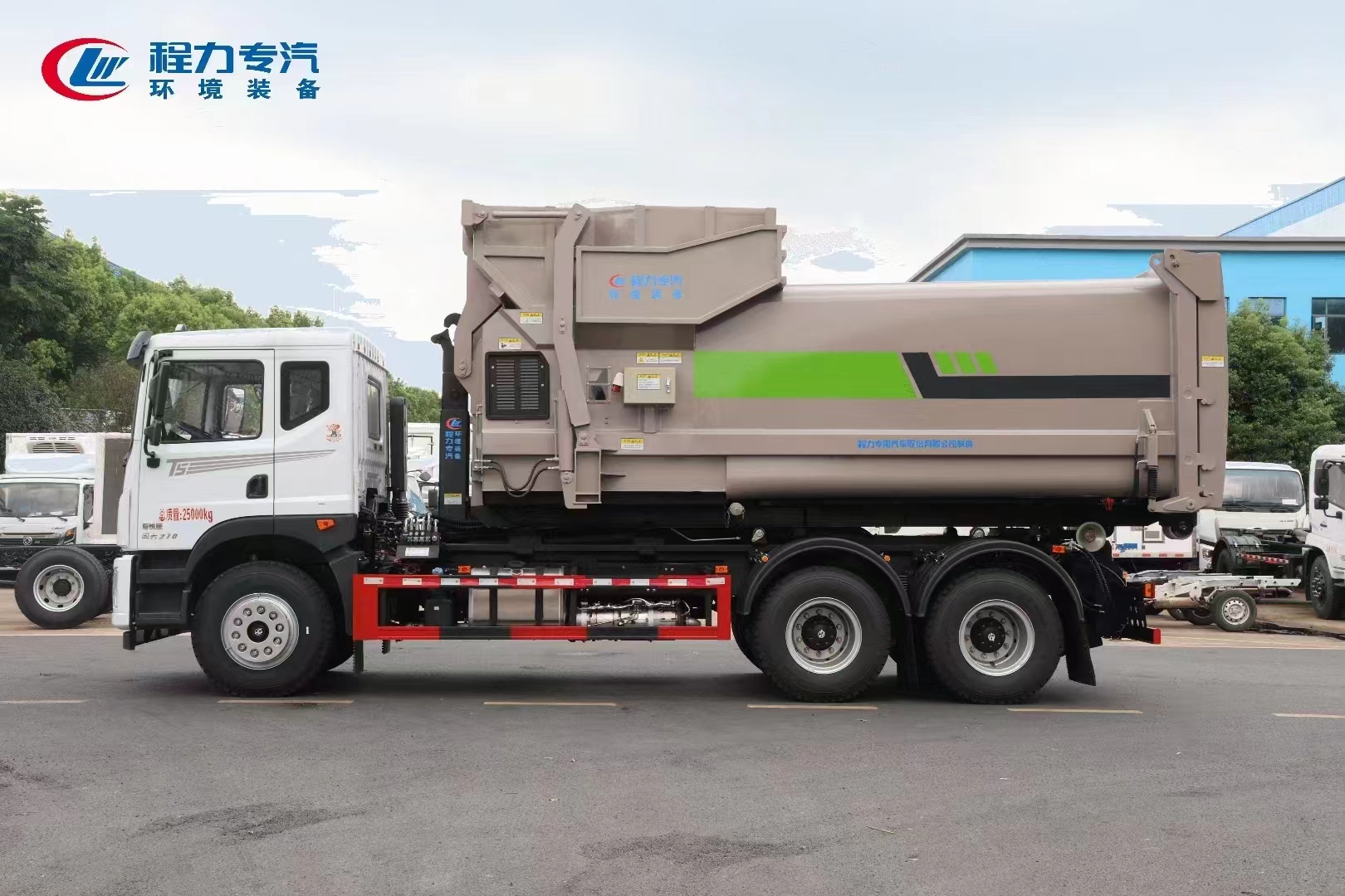 ??????湖北程力汽車:程力專汽東風華神后雙橋勾臂垃圾車+移動壓縮箱產品型號及參數(shù)配置,程力專汽東風華神后雙橋勾臂垃圾車+移動壓縮箱高清圖片,程力汽車系列程力專汽東風華神后雙橋勾臂垃圾車+移動壓縮箱最新報價請撥打客服熱線。車輛主要配置 產品名稱: 程力威牌CLW5253ZXXBHJ車廂可卸式垃圾車 外形尺寸: 828025503170(mm) 排放水平: 國六 貨箱尺寸: (mm) 總質量: 25000(Kg) 接近/離去角: 15/19,15/20,15/21() 額定質量: 14250,14185(Kg) 前懸后...