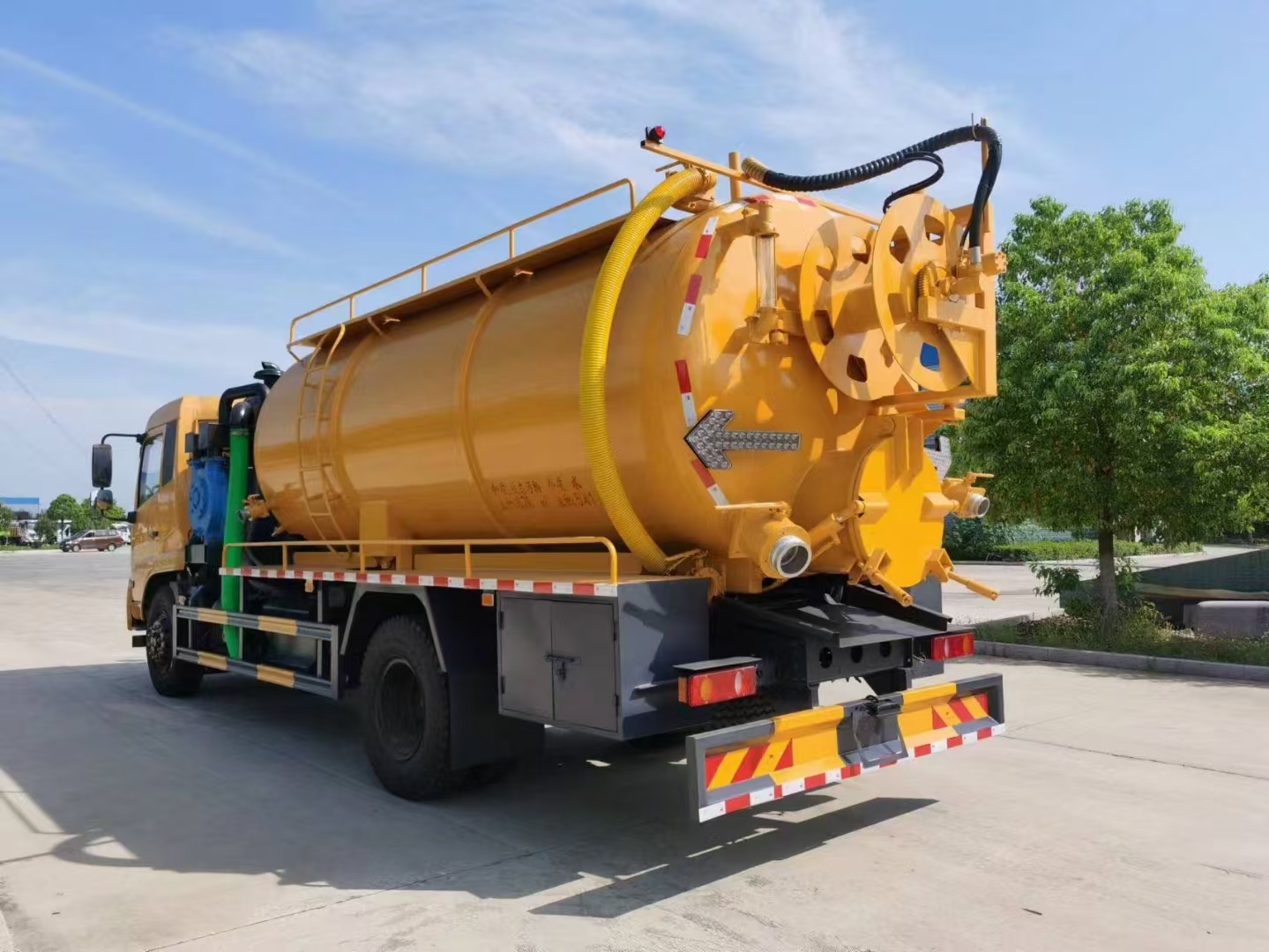 | 上裝配置 | 罐體容積15立方左右,清水罐5立方,其余為污水,罐體8mm厚,封頭8mm厚,舉升頂為自卸中置頂,副駕駛一側(cè)清水罐和污水罐用DN100球閥互通,另罐頂裝一個(gè)互通,副駕駛一側(cè)按照公告圖片安裝爬梯;清水罐:品孚350高壓泵,罐頂水車罐口一個(gè),帶爬梯,高壓管100米22號(hào)高壓管,尾部液壓卷盤(pán),左右各裝一個(gè)消防栓進(jìn)水口,清水罐裝兩側(cè)各一個(gè)小球閥,罐底裝一個(gè)DN65排水閥, 吸污罐:一個(gè)散水罐口,罐體內(nèi)部鋪1.2米不銹鋼板,罐內(nèi)爬梯,罐體內(nèi)部防浪板加固,水循環(huán)泵水箱為碳鋼材質(zhì).副發(fā)濰柴375馬力配SK-30水循環(huán)泵,副駕側(cè)排150鋁合金球閥,開(kāi)600小蓋排污口,尾部600小蓋左側(cè)一個(gè)150排污口,右側(cè)一個(gè)100的進(jìn)料口,側(cè)邊一個(gè)100排清水,罐體尾部?jī)蓚?cè)工具箱,1根10米吸污管,箭頭燈,手動(dòng)油門… | ||