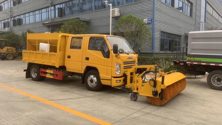 | 上裝配置 | 箱體尺寸2600*2060*400mm,箱體內(nèi)裝 3立方融雪撒布機(jī),撒布機(jī)采用 V 型料倉,結(jié)構(gòu)簡單可靠,使融雪劑自動落料,出料完全,無殘留。駕駛室可加裝2米除雪鏟或者2米除雪滾。 | ||
