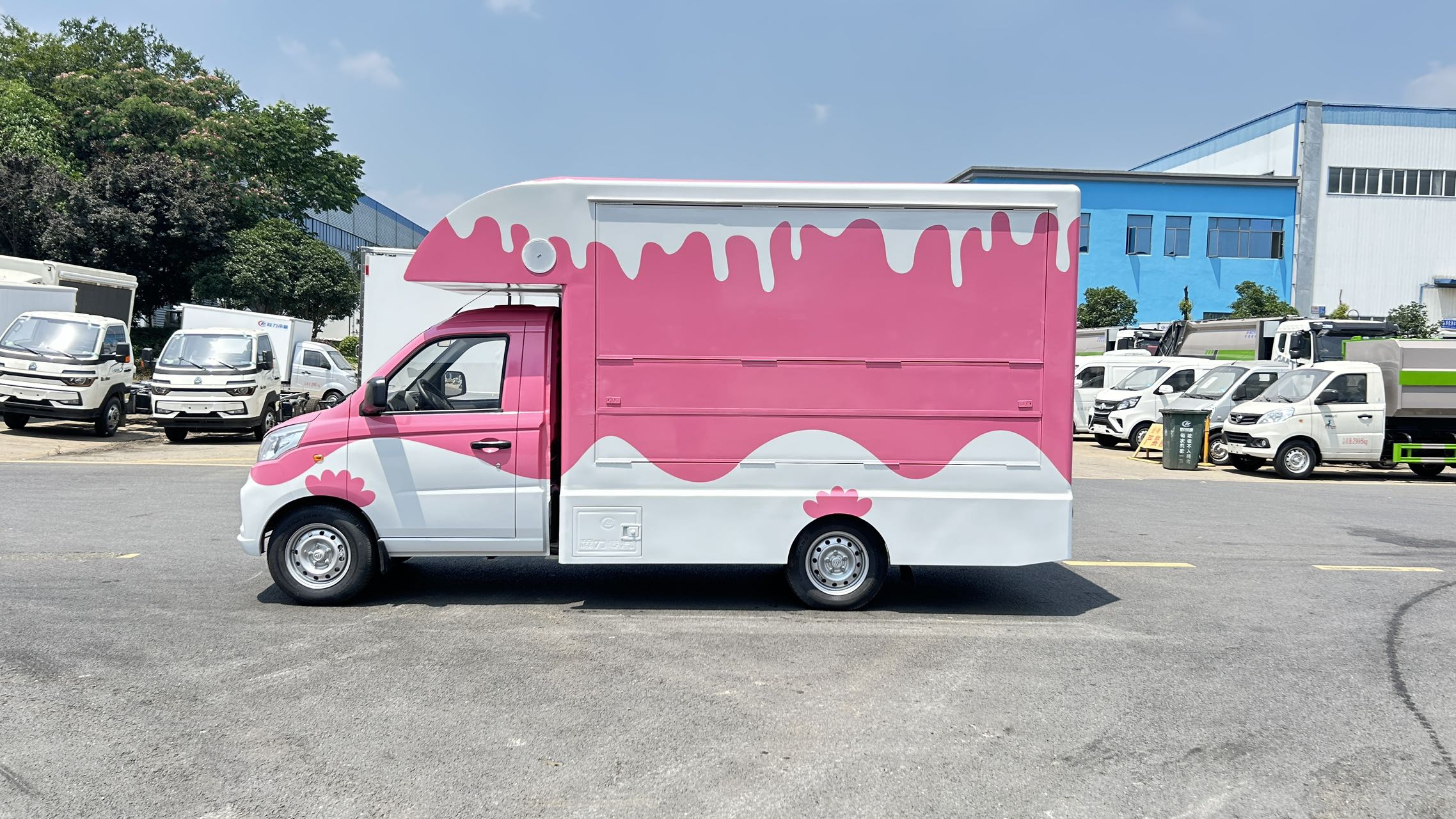 上裝配置 1,箱體材質(zhì):矩形方管骨架,冷板蒙皮結(jié)構(gòu),翻板采用內(nèi)外彩鋼板,中間高性能保溫板,側(cè)板整體復(fù)合,輕量化,保溫隔熱。整體車身顏色為白色,可定制車身各種顏色彩條拉花,或各種噴涂樣式,(選裝內(nèi)部不銹鋼飾面板) 2,箱體結(jié)構(gòu): (1)箱體鴨嘴額頭設(shè)計(jì),帶儲(chǔ)物功能。 (2)箱體兩側(cè)上翻板,帶下翻吧臺(tái)。 (3)地板為防滑鋁花紋板,箱體裙邊包圍,帶檢修艙門,工具柜。